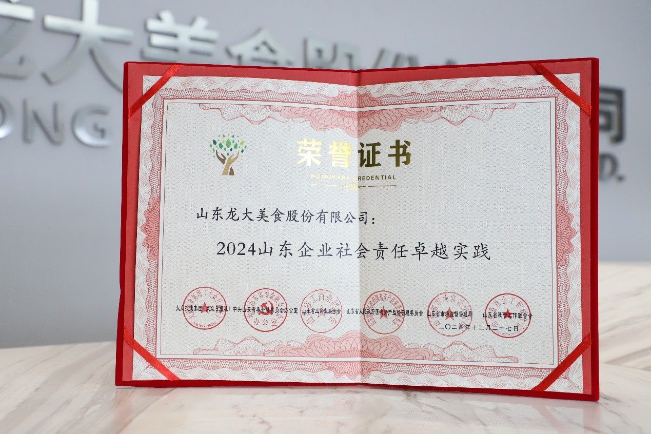 4月15日,,,,,“2024山东企业(企业家)社会责任”宣布暨“2025山东企业(企业家)社会责任”展示运动仪式在济南举行。。。。。。2121非凡官网美食依附在社会责任领域的突出体现,,,,,荣获“2024山东企业社会责任卓越实践”奖项。。。。。。