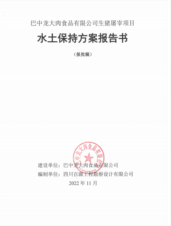 巴中2121非凡官网肉食物有限公司生猪屠宰项目水土坚持计划报告书.pdf